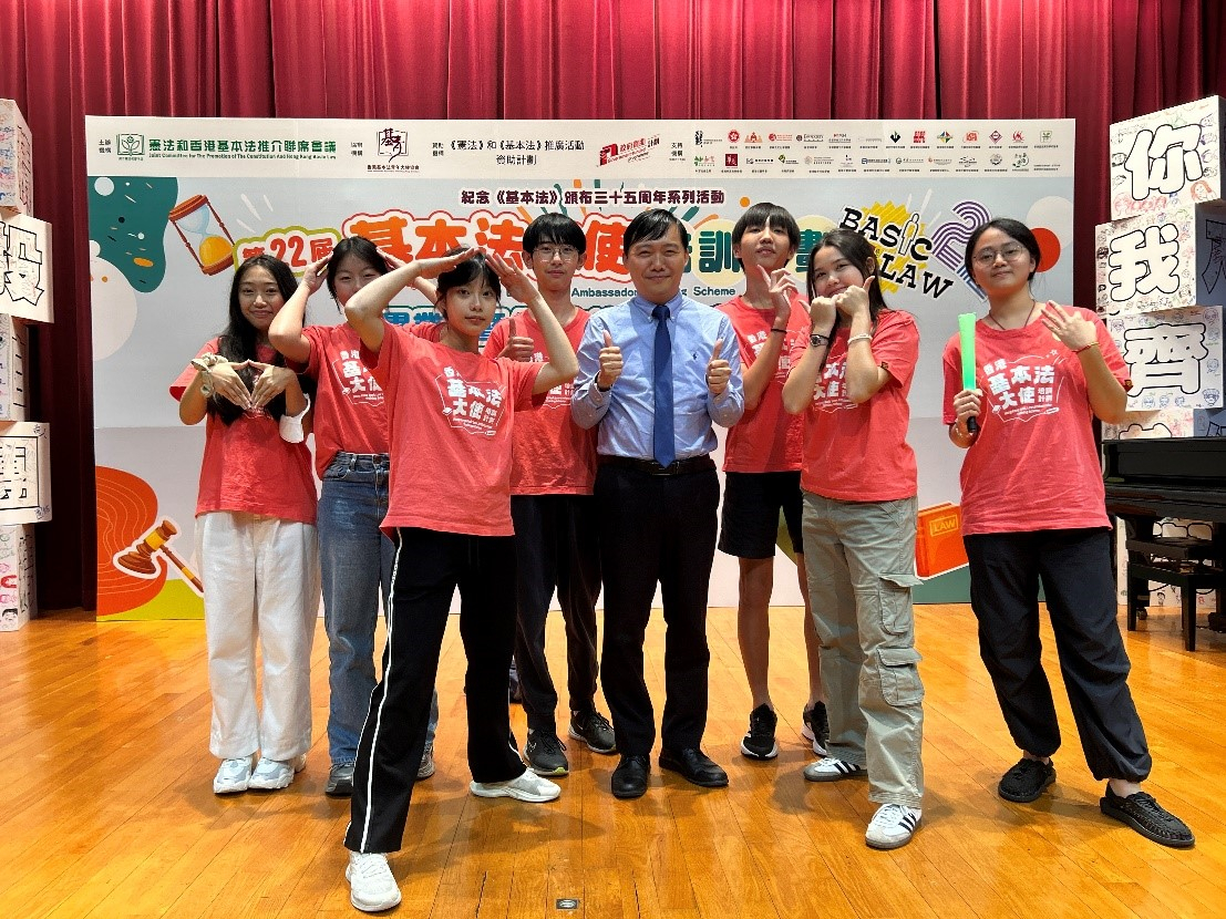 本校國家安全教育委員會基本法教育組,參與由香港基本法推介聯席會議主辦之「第二十二屆《基本法》大使培訓計劃」,4C楊穎欣及4D梁穎豪獲得嘉許獎狀;3B鍾子瀅獲得嘉許獎狀及傑出學員獎;4A楊塱堃獲得嘉許獎狀及「政策多面體」報告比賽冠軍,研究主題是「刑事檢控:商業罪案和涉及國家安全案件」;5D陳芷澄獲得嘉許獎狀、最優秀組別及「政策多面體」報告比賽亞軍,研究主題是「國民教育(憲法、基本法及國家安全教育)」;4C殷瑾希獲得嘉許獎狀及「政策多面體」報告比賽季軍,研究主題是「香港基層地區治理區議會」;4B傅雅文獲得嘉許獎狀及「政策多面體」報告比賽殿軍,研究主題是「香港公營房屋制度:出租公屋」。