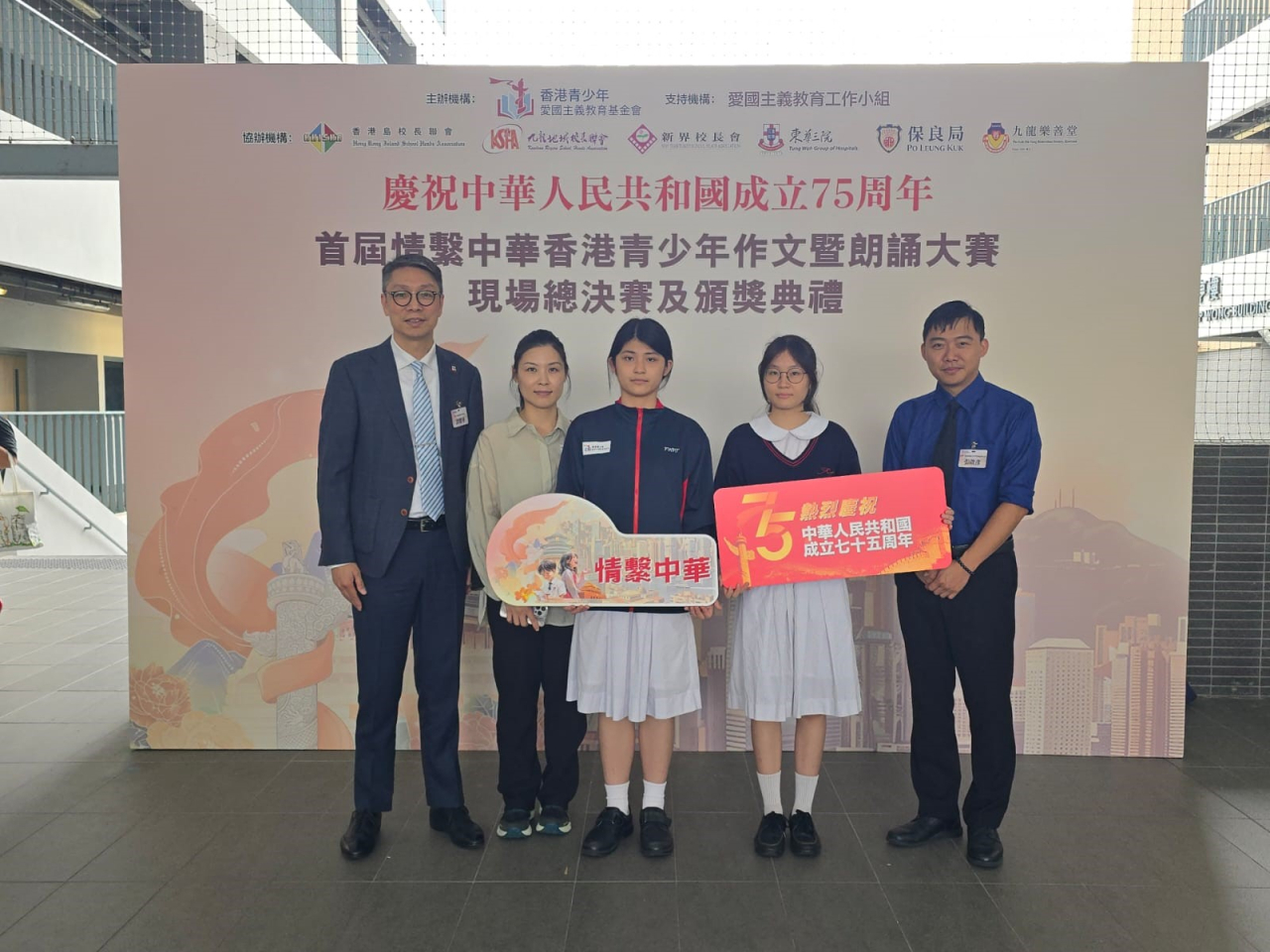 本校4B梁翠瑩同學、3B李施瑩同學參與由香港青少年愛國主義教育基金會舉辦之「首屆情繫中華香港青少年作文暨朗誦大賽」—分別獲得三等獎及優異獎。