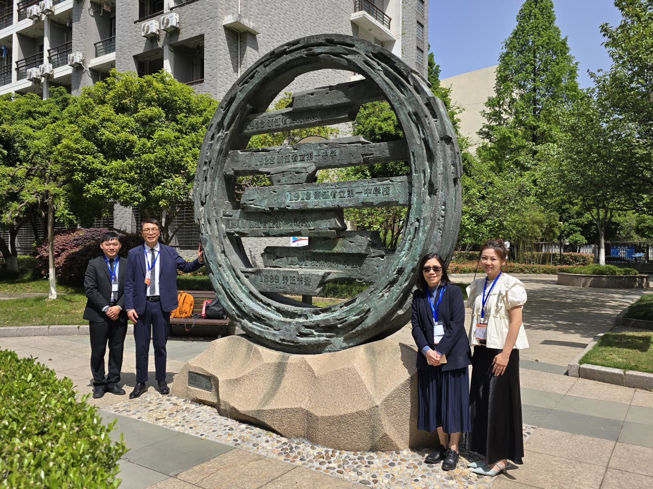 本校教職員在杭州四中世紀年輪下合影。